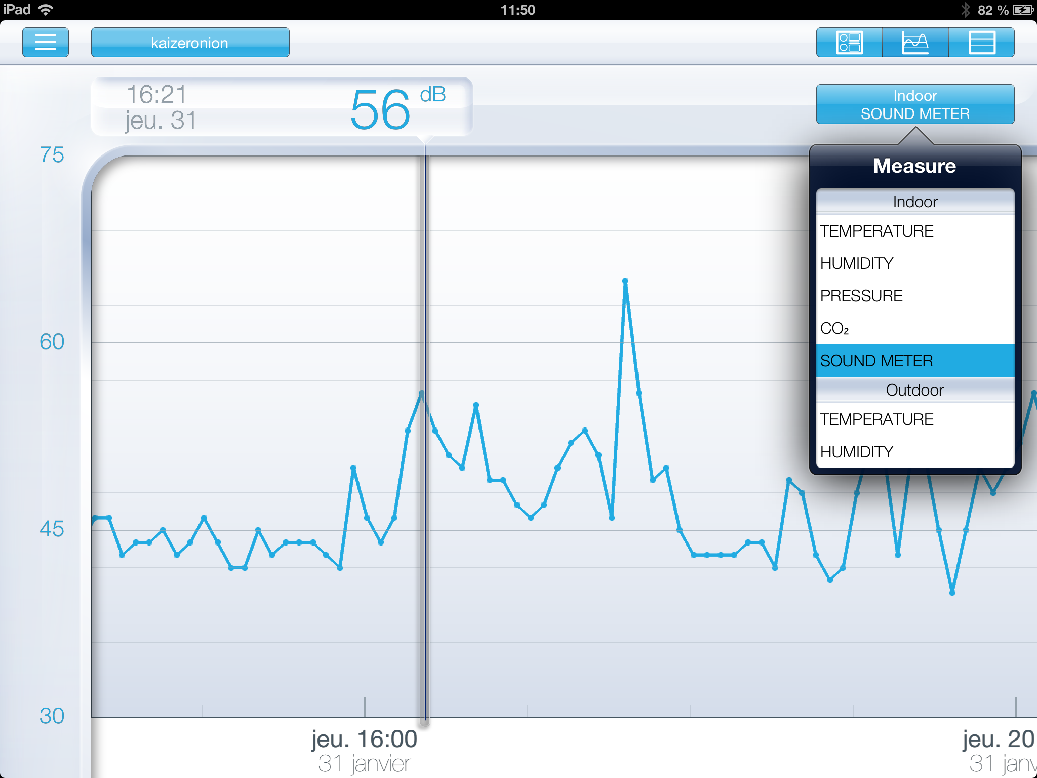 La fréquence des enregistrements est par défaut toutes les 5 minutes, mais vous pouvez à tout moment faire des mesures instantanées sans limite de stockage. Toutes les données sont enregistrées dans le Cloud, ce qui vous permet d’accéder à vos données n’importe où, quand vous le souhaitez. Si votre connexion Internet tombe, les données sont conservés en local également.